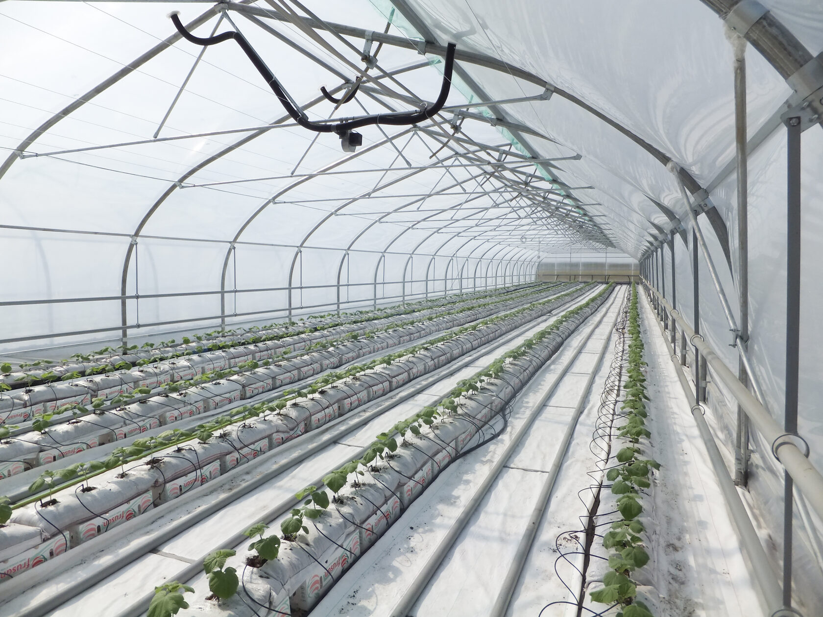 Покрытие туннельной теплицы -два слоя пленки производства Греции с необходимым набором присадок.