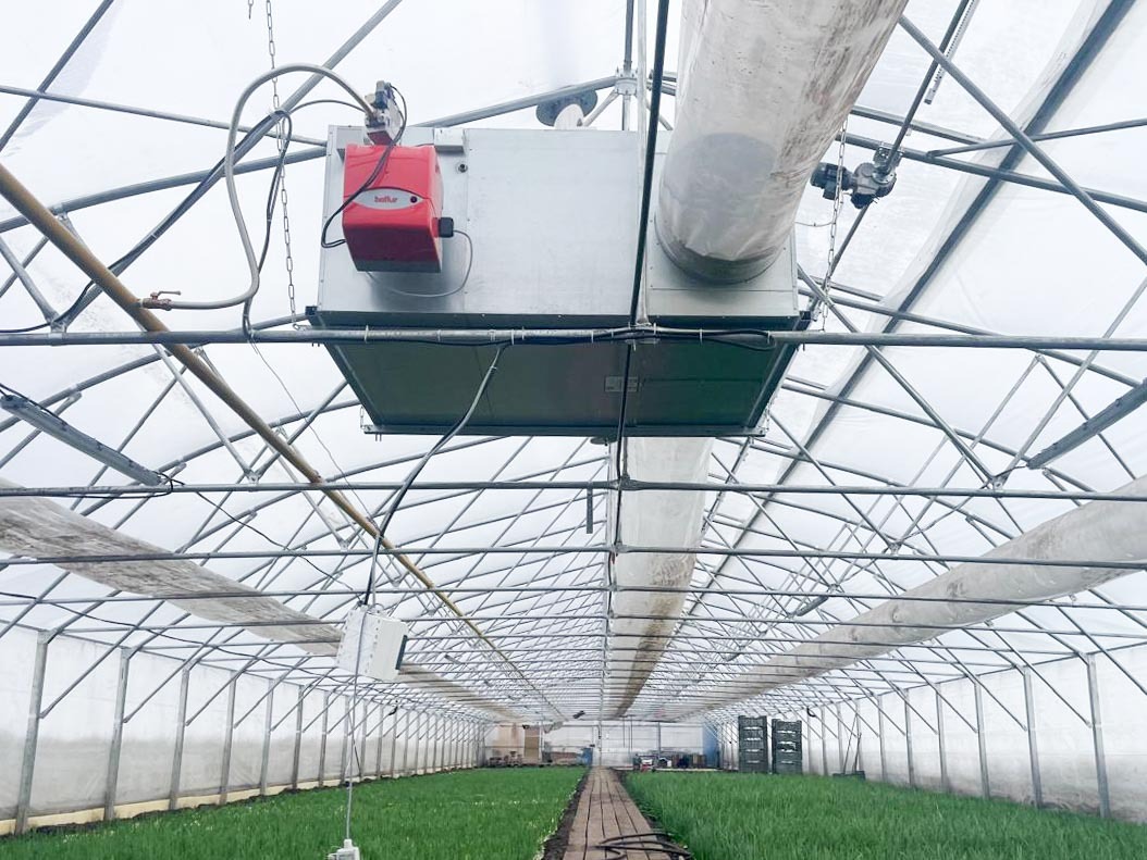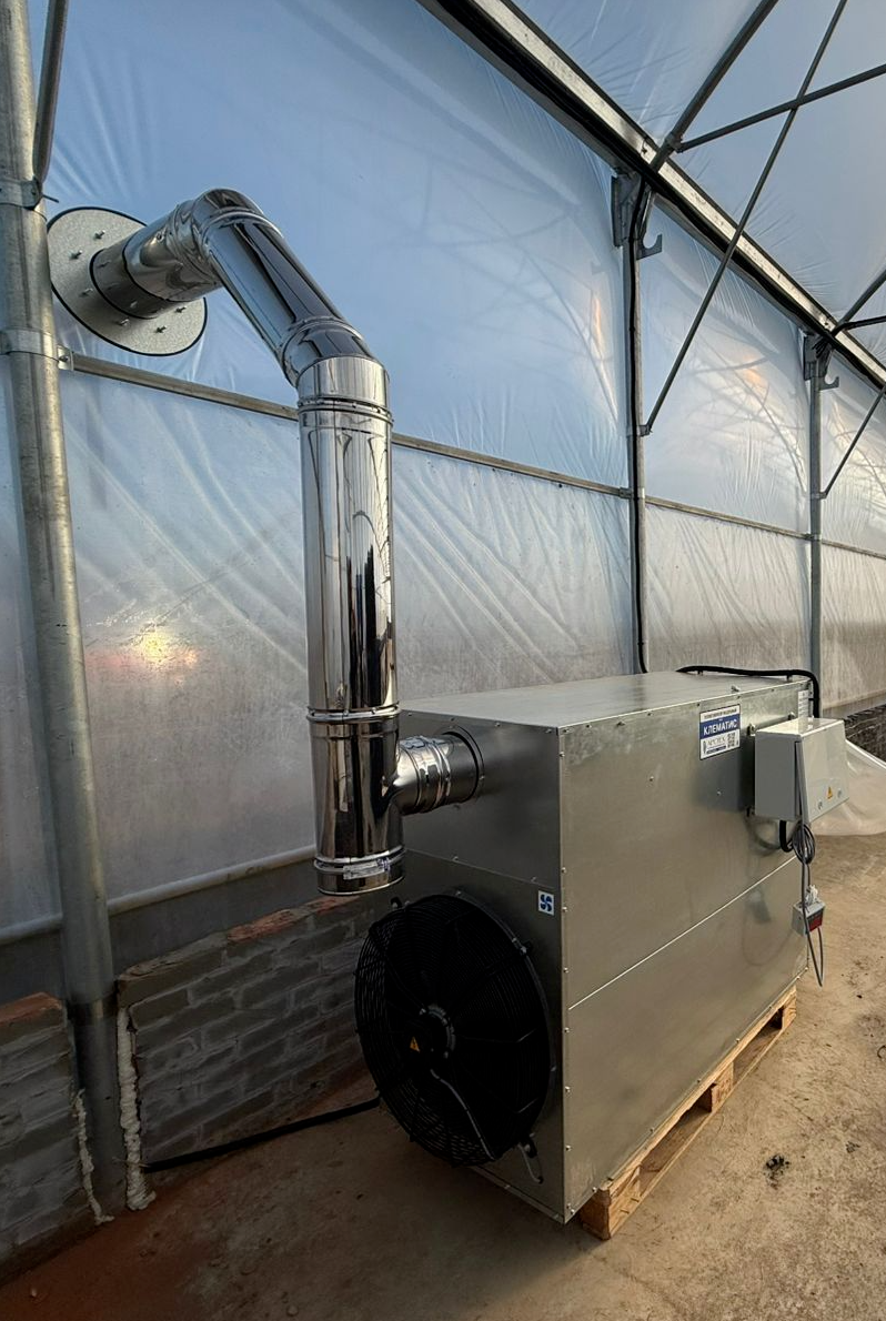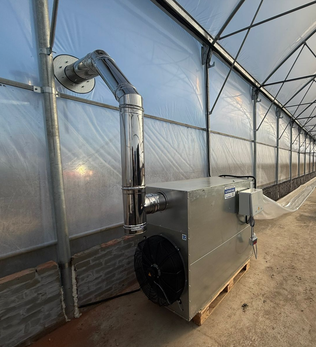 Воздуховод размещается поверх шпалеры, в случае наземного размещения отопителя он может быть через жесткий рукав так же направлен поверх шпалеры.