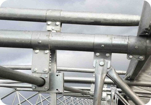 Каждый ХОМУТ обжимается вокруг трубы двумя болтами. Элемент крепится к нему отдельным третьим болтом.