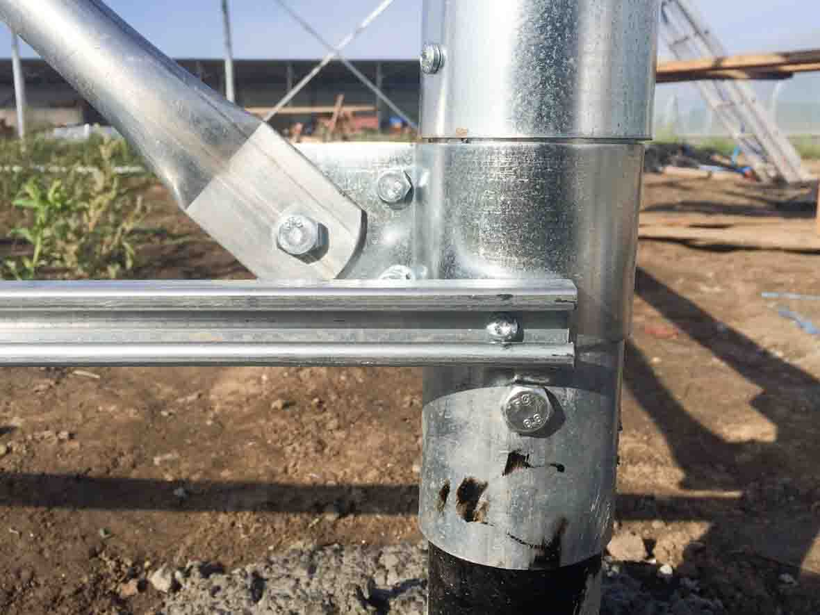 В каркасе теплиц шириной 9.6 и 10 метров, прямая стенка и арка выполнены из трубы диаметром 76 мм с толщиной стенки 2 мм.