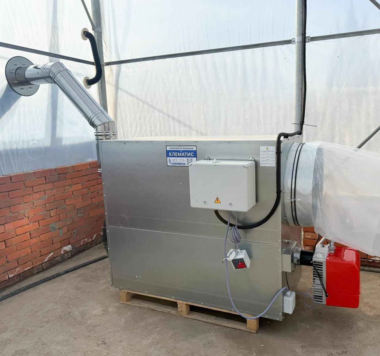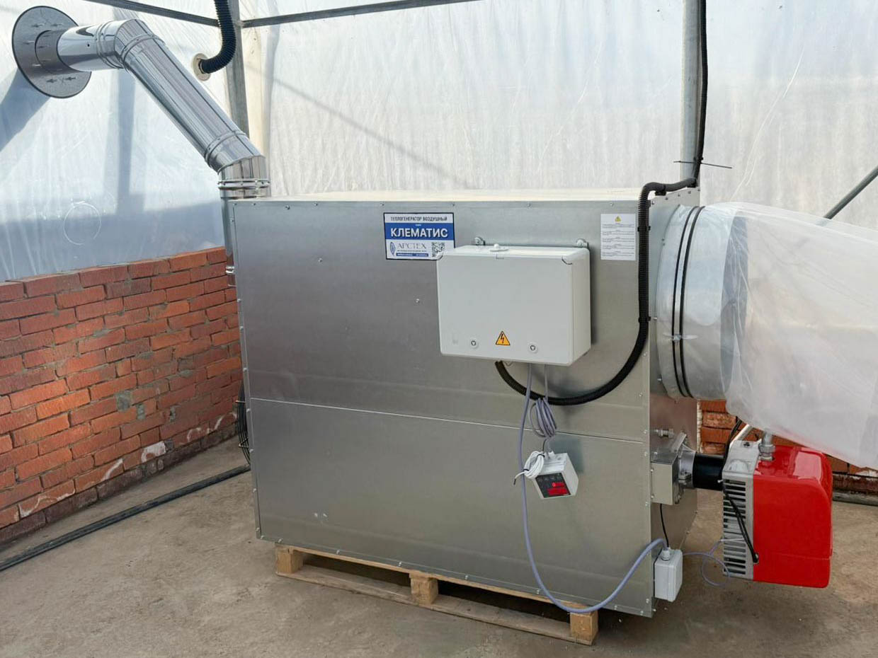 Для отопления в теплицах, мы предлагаем газовые отопительные котлы серии «КЛЕМАТИС». Отопители могут работать как на сжиженном так и на магистральном газе. Есть модель работающая на дизельном топливе. В случае отсутствия магистрального газа практикуется подключение отопителя к газгольдеру, оптимальный объем которого 6 000 -11 000 литров. Такой газгольдер, в зависимости от климатической зоны и требуемых температур в теплице, обеспечит работу двух единиц отопителей, от трех недель и более.
