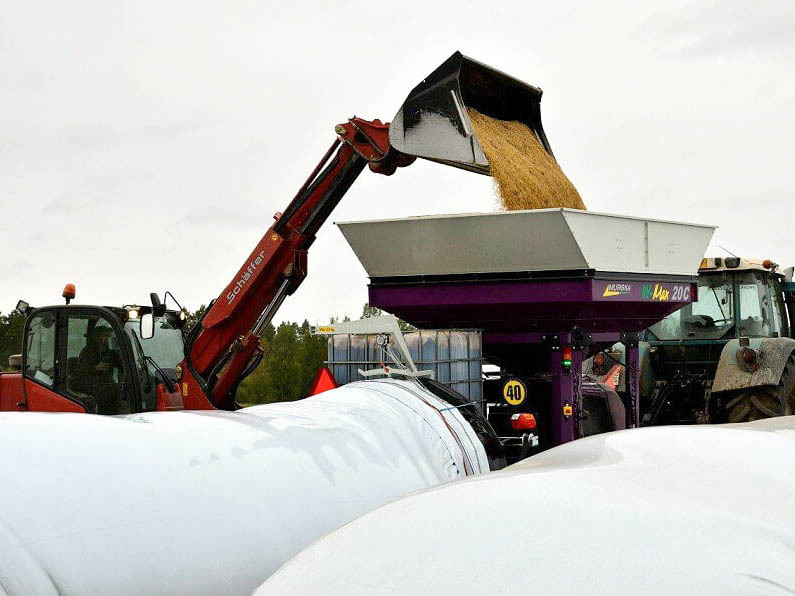 Материал рукава включает светостабилизирующую присадку предотвращающую разрушение от UV. Вместительность одного рукава, в зависимости от его размера может достигать 250 тонн. Рукава для зерна это правильное решение в случае, когда необходимо срочно разместить урожай для хранения. Срок хранения зерна в рукаве до полугода, в некоторых условиях до полутора лет. Есть возможность короткого срока хранения зерна с высокой влажностью. После закладки зерна в рукав, в течении 8-10 дней, количество кислорода начинает снижаться, а СО2 увеличиваться, это придает анаэробные свойства пространству мешка и препятствует жизнидеятельности в нем насекомых и грызунов.