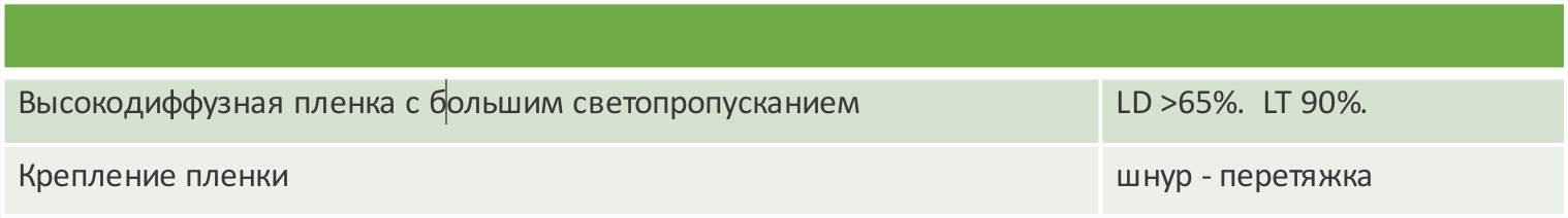 Применяется профессиональная тепличная пленка PLASTIKA KRITIS толщиной 200 мкм, имеет необходимые присадки.