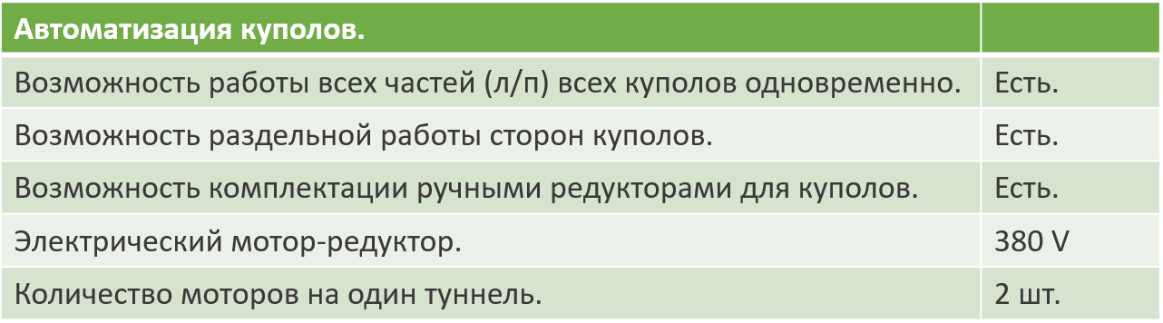 Двигателя приводов расположены в торцах туннеля. Такое расположение позволяет максимально синхронизировать скорость вращения валов. - Двигатель перемещается по направляющим, проемы закрыты вторым куполом пленки.