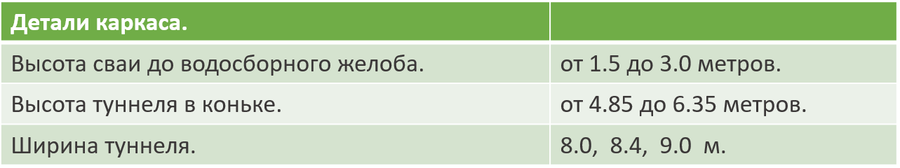 В развернутом состоянии вал опускается в водосборный желоб, в свернутом состоянии пленка поднимается к коньку. Арка имеет угол 122 градуса, что препятствует скапливанию снега в зимний период.